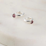 A stylish and eco-friendly accessory to elevate your look. These huggie size hoop earrings feature a delicate pink crystal drop that adds a touch of elegance to your outfit. Made of eco brass, the Tess Earring is a sustainable and high-quality choice for those who care about both fashion and the environment.