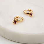 A stylish and eco-friendly accessory to elevate your look. These huggie size hoop earrings feature a delicate pink crystal drop that adds a touch of elegance to your outfit.
