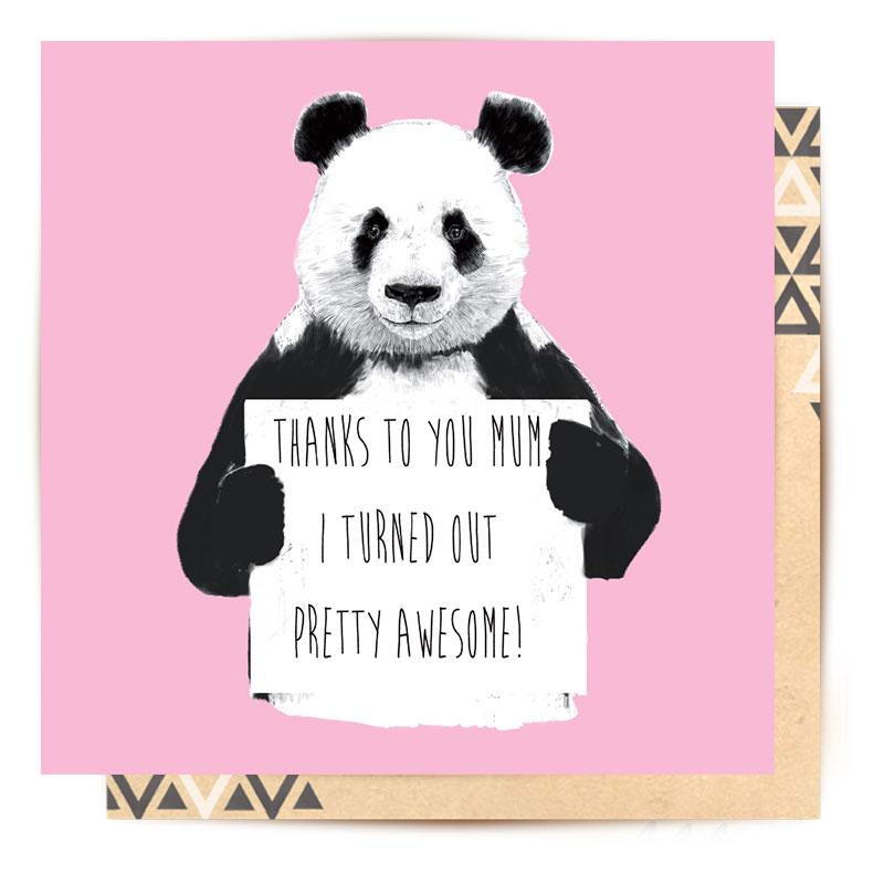 A beautiful mothers day card created from an original panda artwork from Balazs.14 x 14 cm greeting card with illustrations inside and out. Includes a kraft envelope.Made in Australia by La La Land.