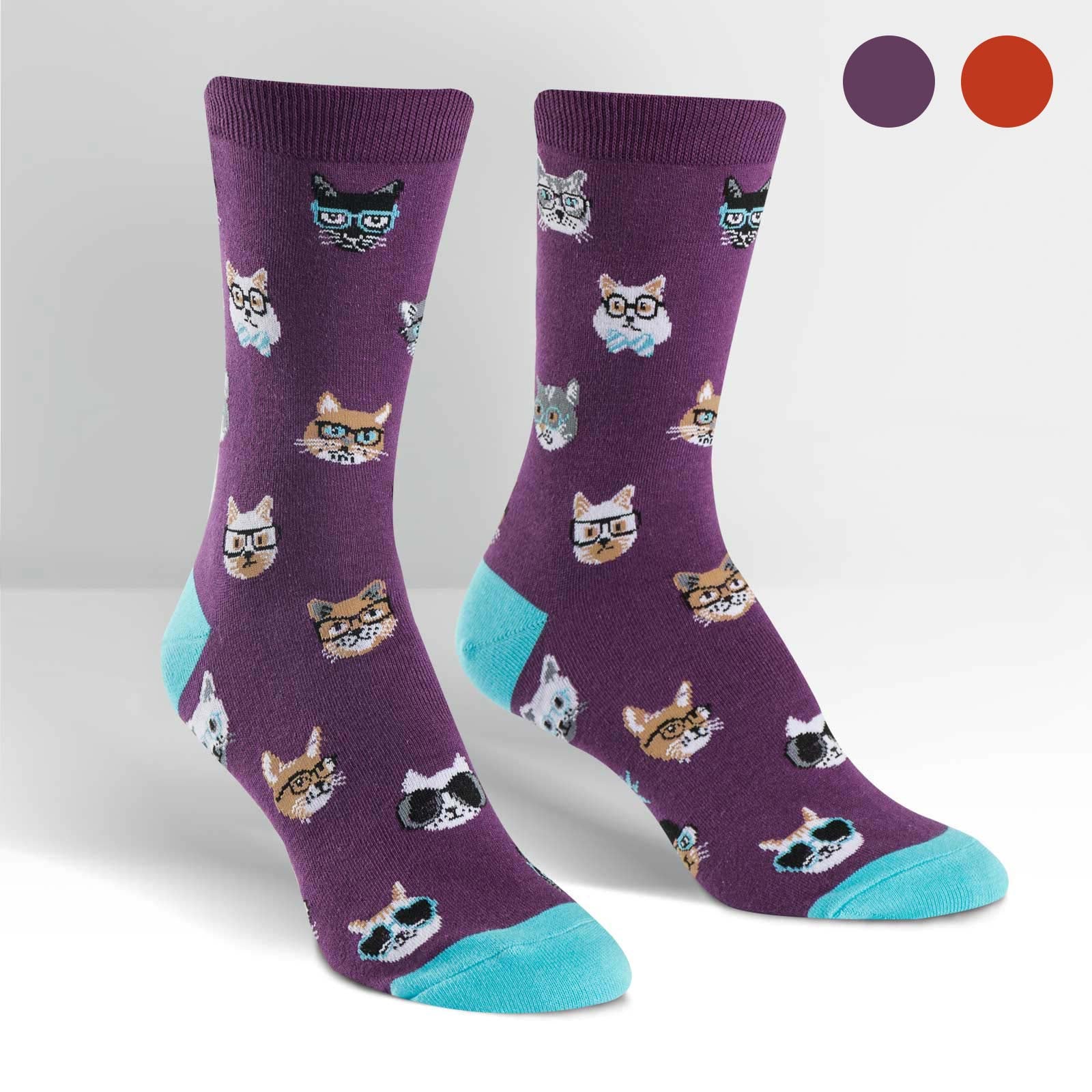 They say curiosity killed the cat, but these cats look pretty curious AND alive (maybe they're on number nine). You don't get this well read without some curiosity (and we know they are well read because they have glasses). Now in two color options; purple and rust. 59% Cotton, 39% Polyester, 2% Spandex. Made in Korea. Our threads are certified by OEKO-TEX® Standard 100, which means we leave out harmful chemicals to keep your skin safe and happy. Approximately fits women's shoe size 5-10.